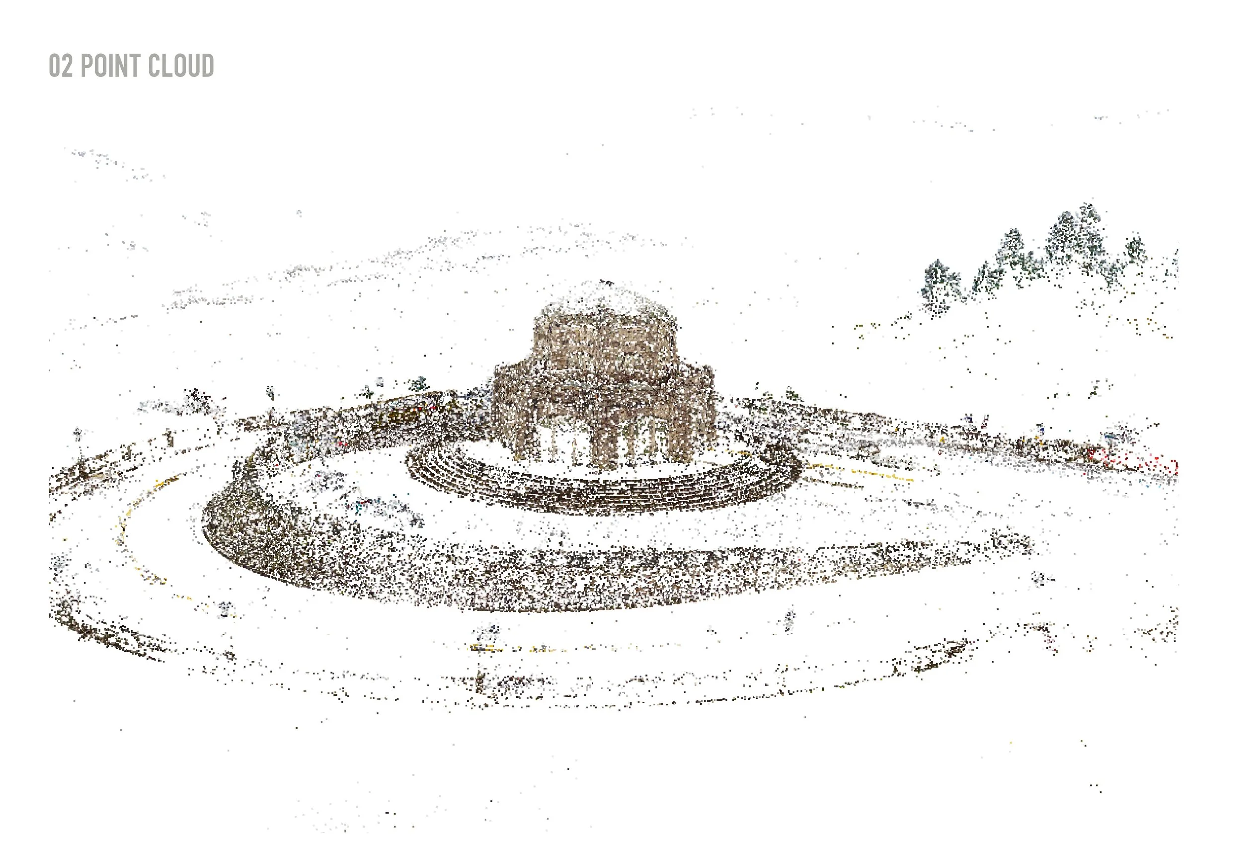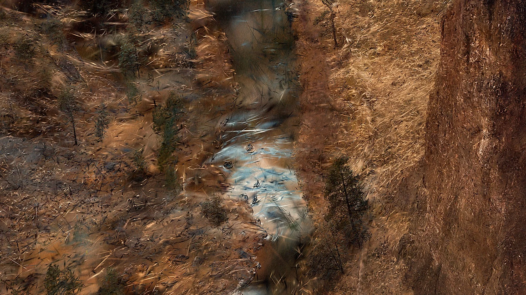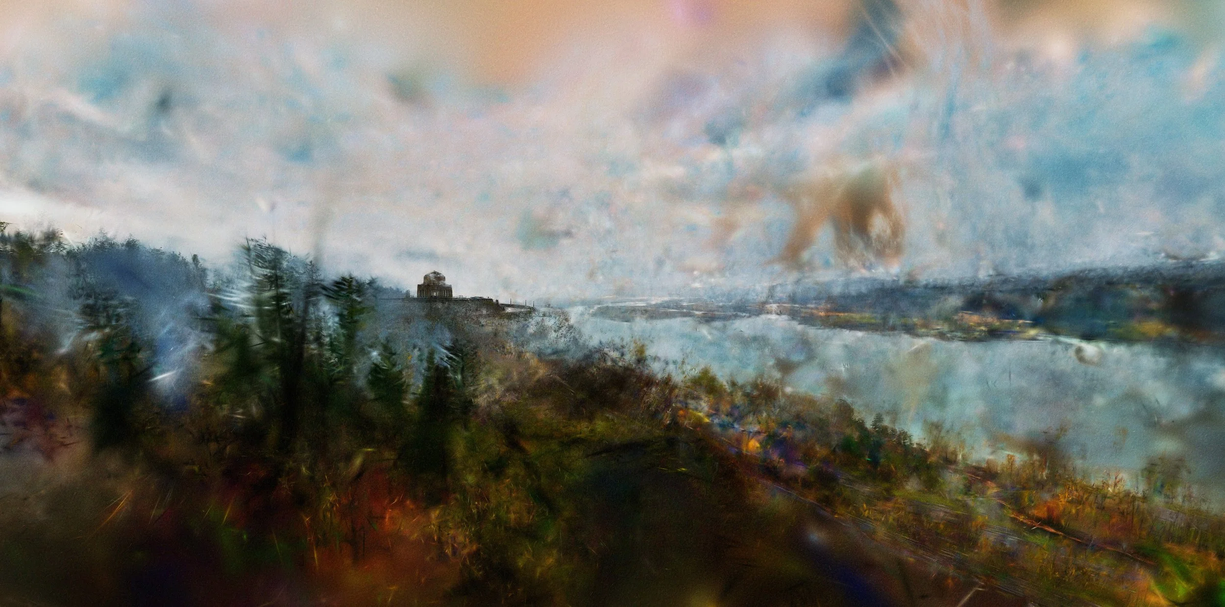 PROCESSThese photographic works are created by exploring the spatial data of a point cloud model, which is constructed from hundreds of traditional photographs of iconic Oregon locations. Using a technique called 3D Gaussian Splatting (3DGS), the original scene is transformed into a three-dimensional photograph that can be explored. The final prints capture views taken by a virtual camera that is deliberately positioned in areas where the model collapses, resulting in images in which the photographic detail gives way to an impressionistic rendering of the location.ARTIST STATEMENTSplatScapes is driven by a desire to create a fundamentally impressionistic form of contemporary photography. Unlike the camera’s traditional role as a tool for objective reality, this work seeks to render the essence of a place, its energy, memory, and atmosphere, by leveraging the inherent instability of the digital data.These scenes are constructed from millions of overlapping, semi-transparent ellipses rather than solid geometry. While the imagery appears cohesive from a distance, the illusion dissolves into a cloud of abstract data points upon closer inspection. This aesthetic bridges my dedication to photography with my longtime admiration for the Impressionists. For the past twenty years, I have sought a way to pay homage to their vision within my own photographic work. I never thought the opportunity would come through the use of cutting edge technology.